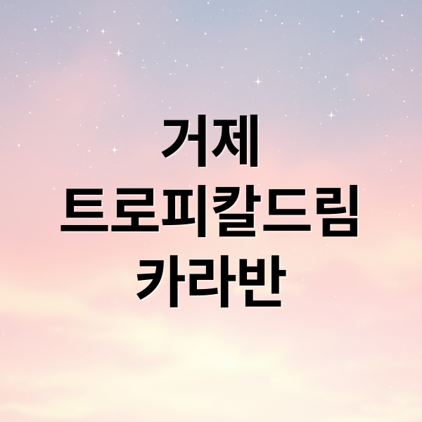 트로피칼드림 카라반은 거제도의 아름다운 자연 속에서 편안하게 휴식을 취하고, 주변 관광지도 둘러보기에 좋은 위치에 있답니다. 카라반에서의 특별한 경험과 함께, 거제도의 매력을 듬뿍 느껴보세요!