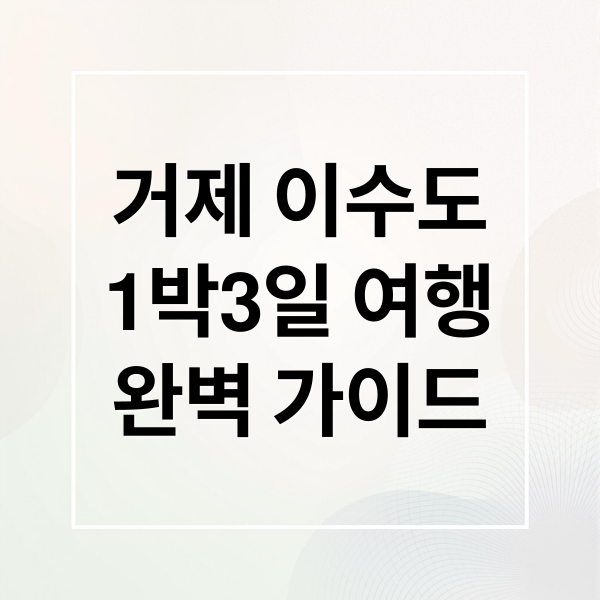 복잡한 도시를 떠나 아름다운 섬, 거제 이수도에서 1박 3일간 특별한 휴가를 보내는 건 어떠세요? 맛있는 음식과 아름다운 자연을 만끽하며 잊지 못할 추억을 만들 수 있습니다. 숙소, 배편, 맛집, 관광 코스까지 이수도 여행의 모든 것을 완벽하게 준비하세요!